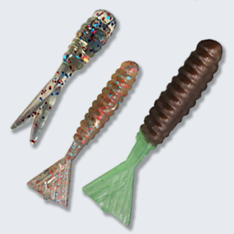 Guppy Gobblers are a 2-inch or 1.5-inch bait that come in multiple colors and are sold in a pack of 12.