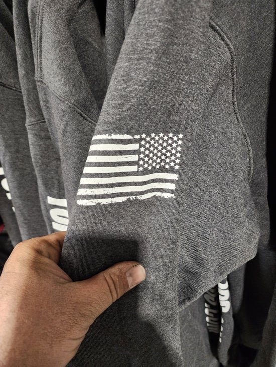 Grey hooded sweatshirt soft and comfortable.